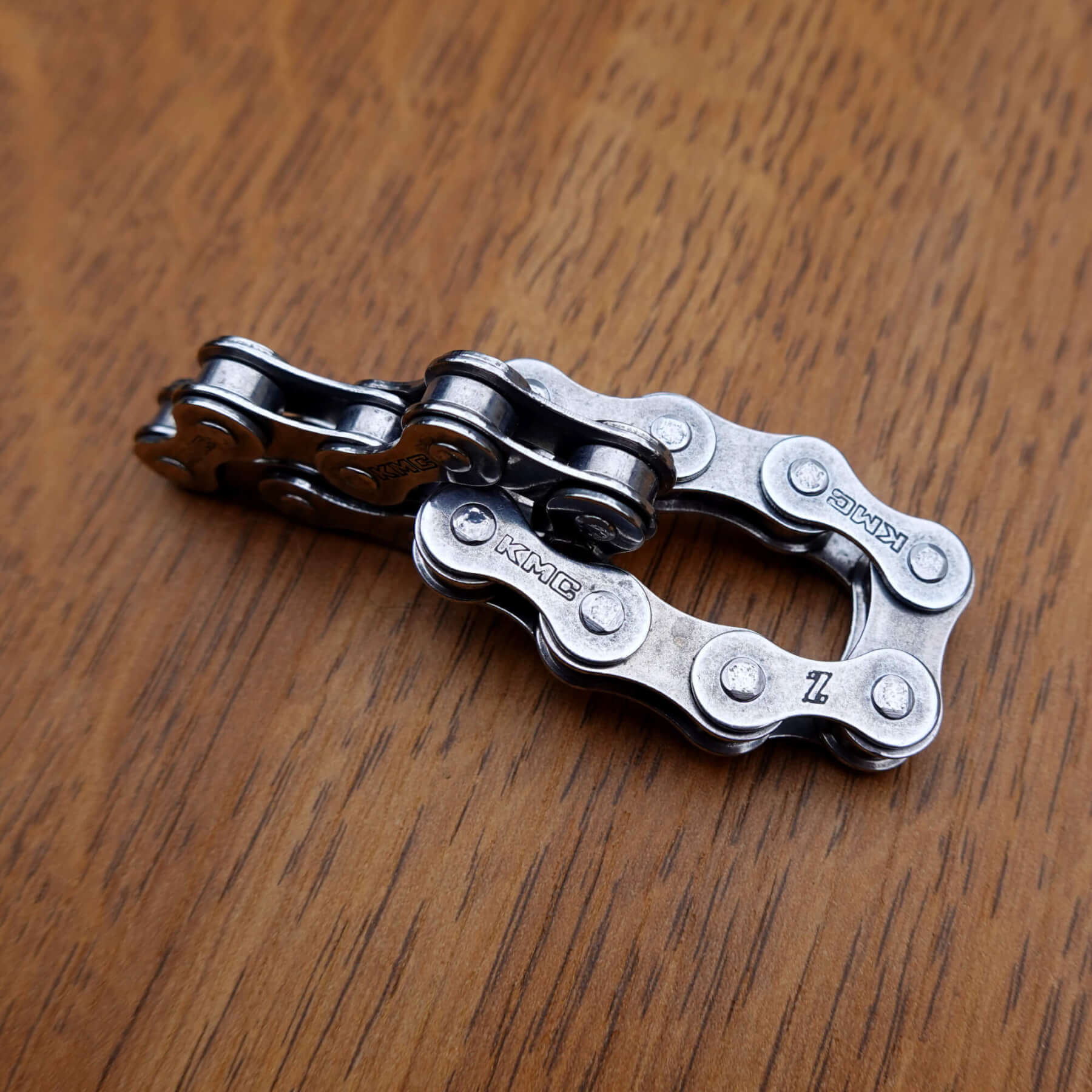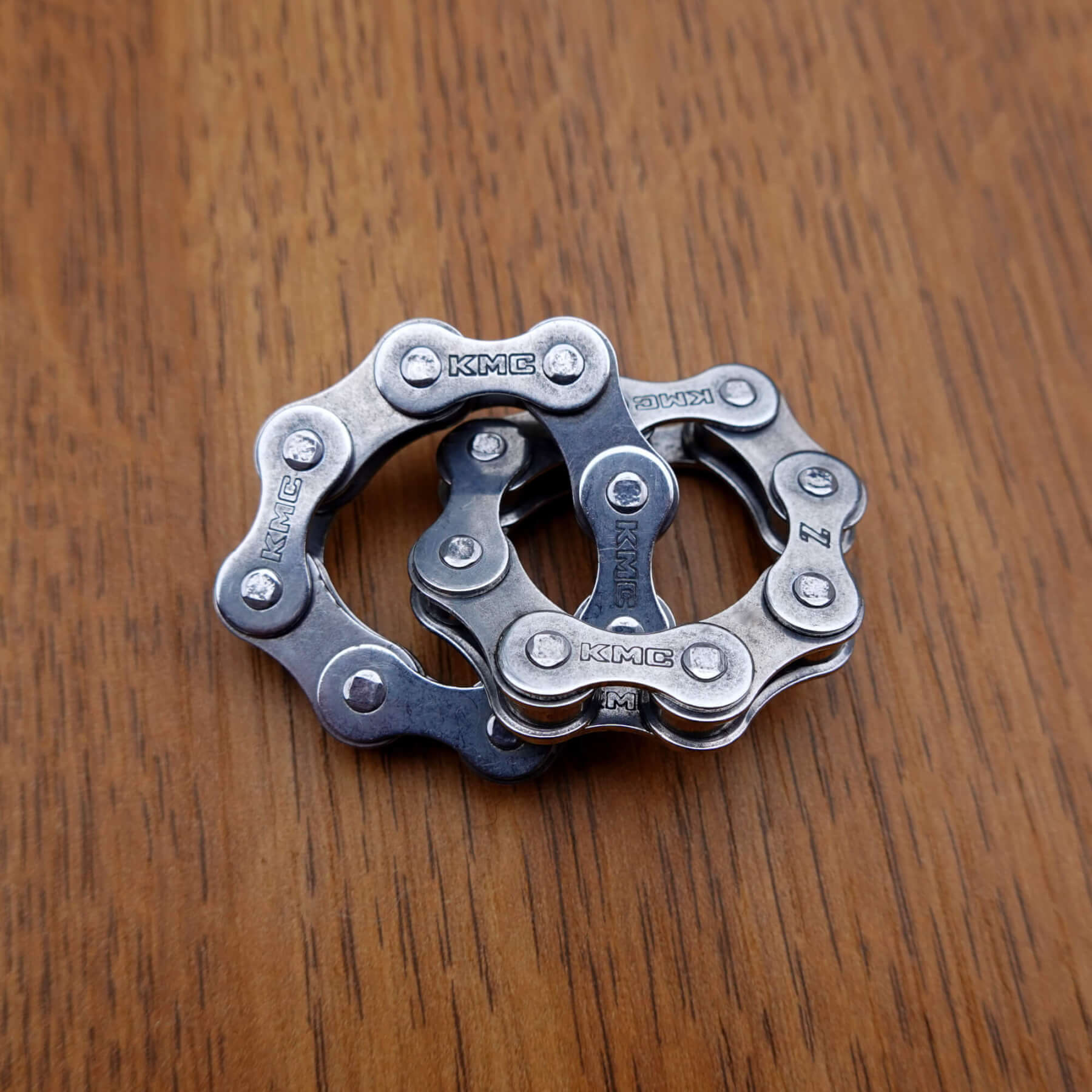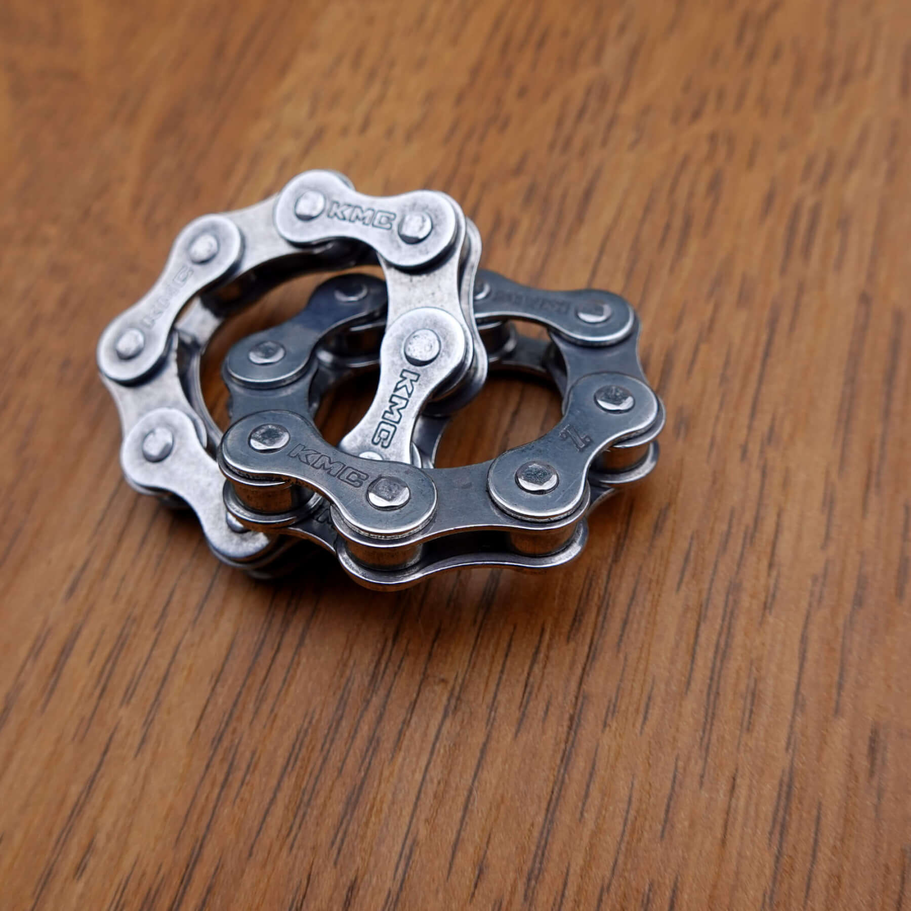 🔗 Fidget anti-stress / jouet de poche / jouet de bureau / jouet haptique réalisé à partir de vieilles chaînes de vélo initialement destinée au rebut, qui sont nettoyées méticuleusement et assemblées en cercles.