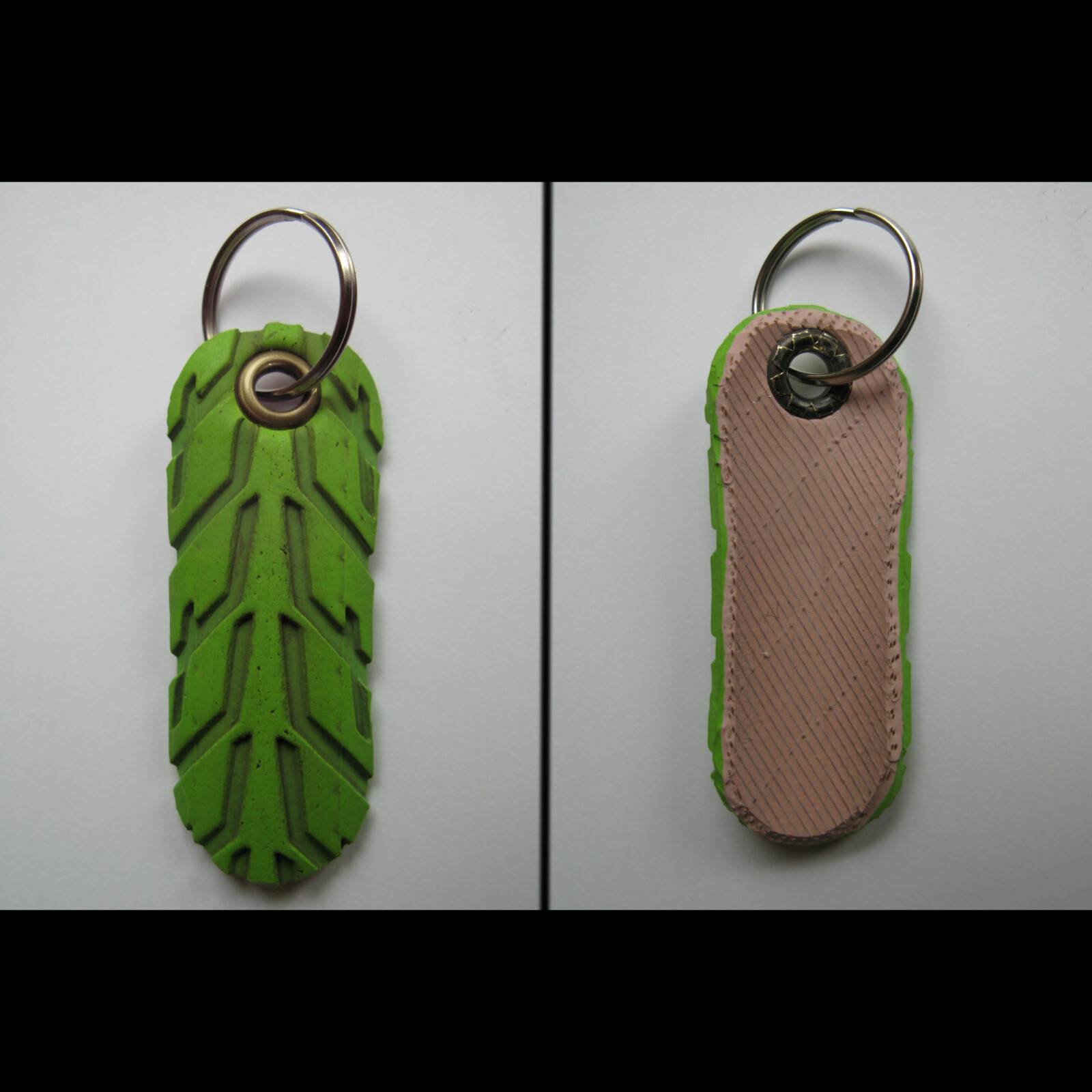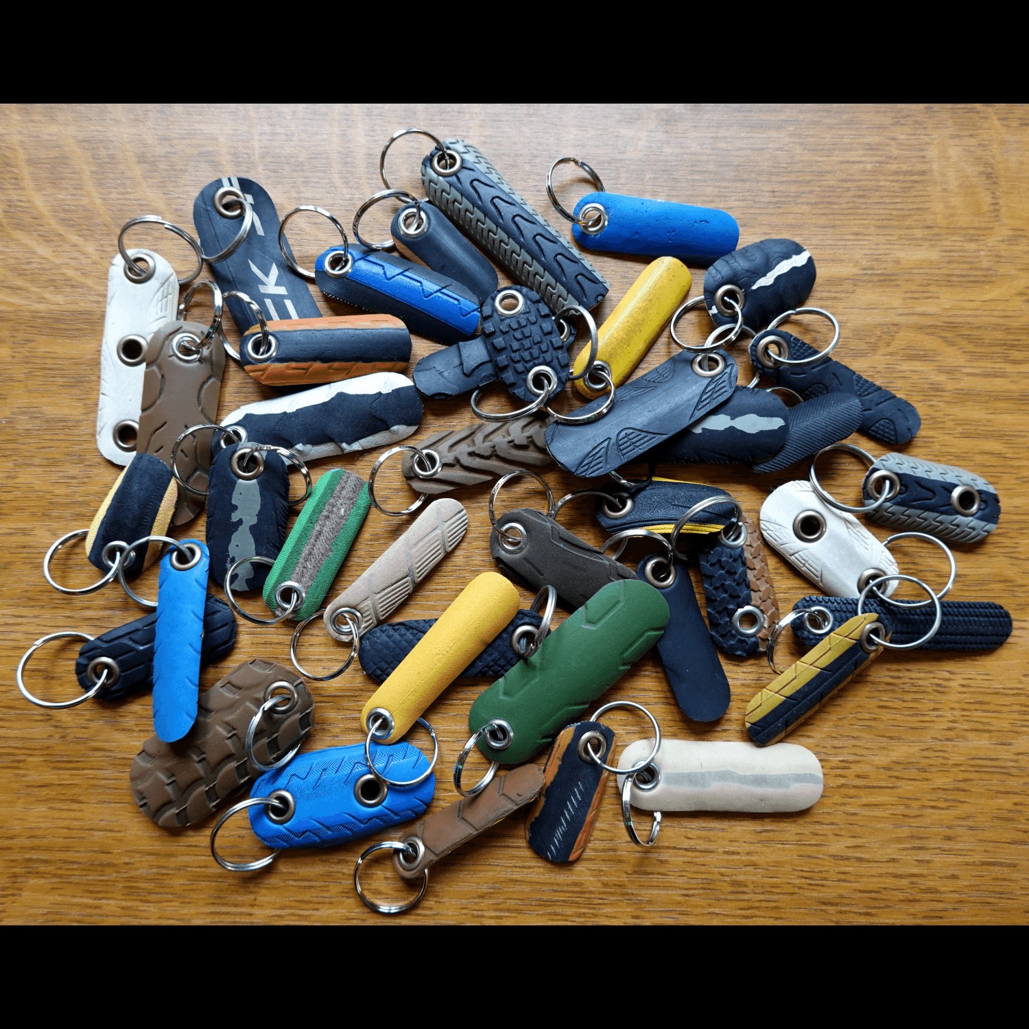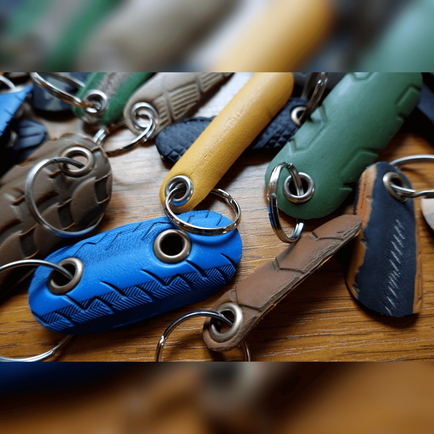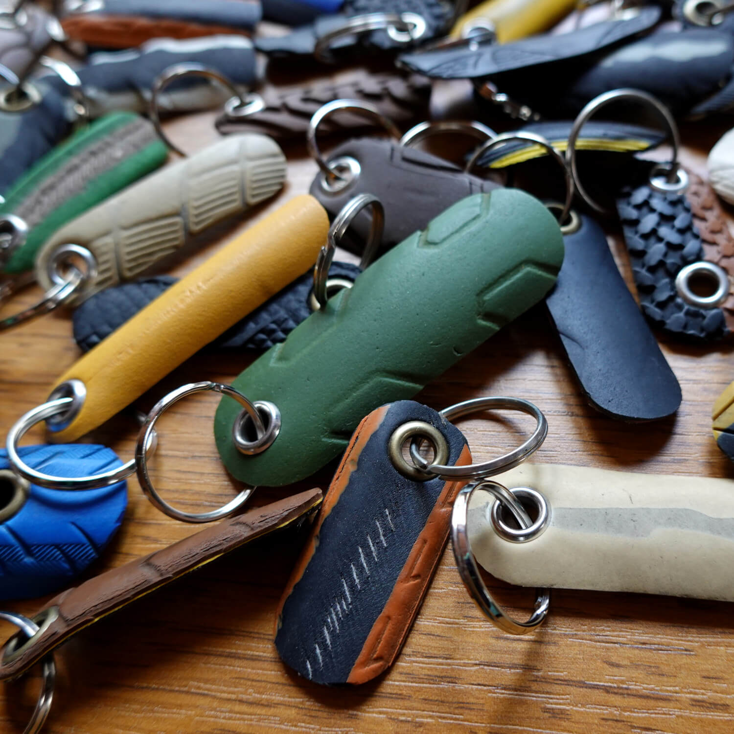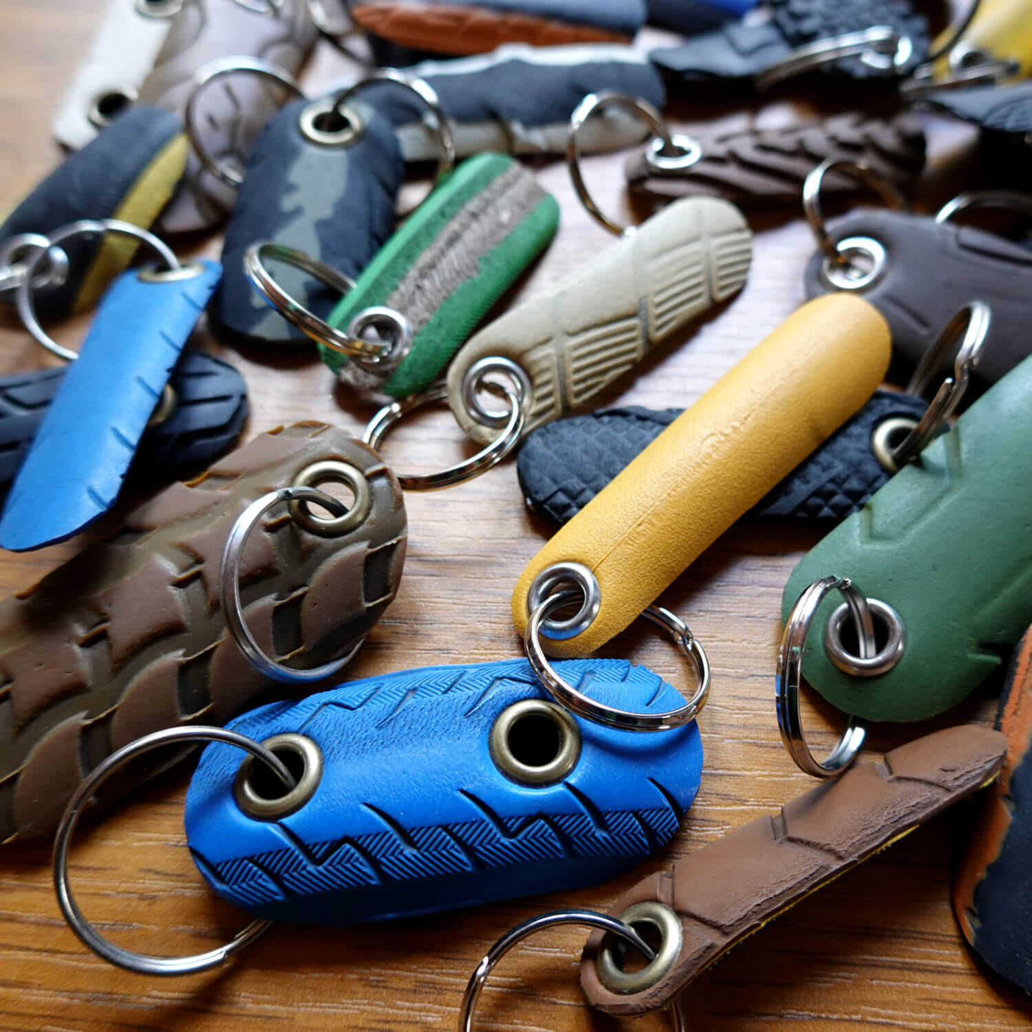 Porte-clés fabriqués à partir de pneus de vélo usagés.