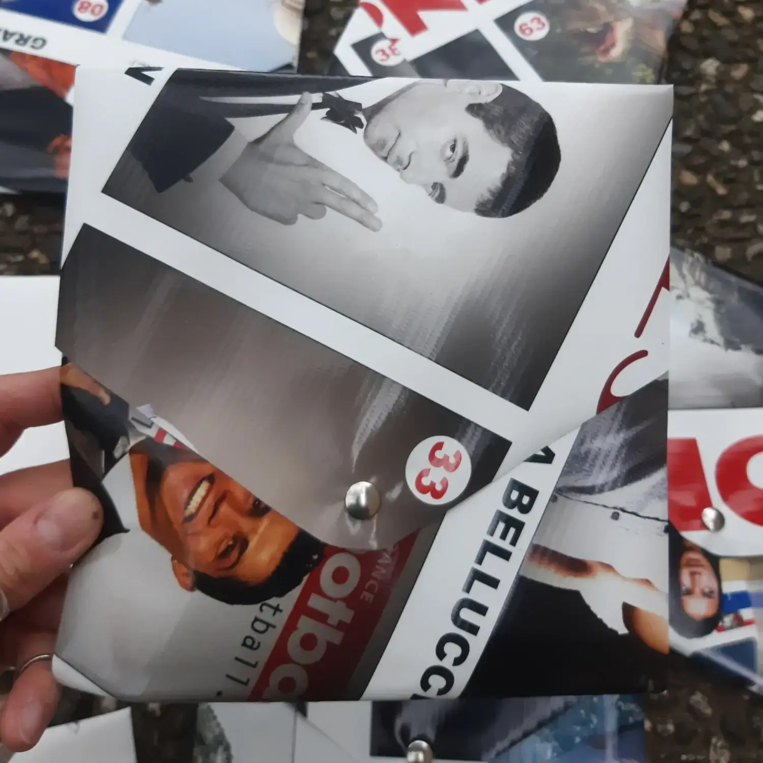 • Imprimées : issus de la bâche originale (photo, graphisme, texte) → chaque pochette est 100% unique et l’illustration aléatoire (un peu d’humour est parfois nécessaire !)