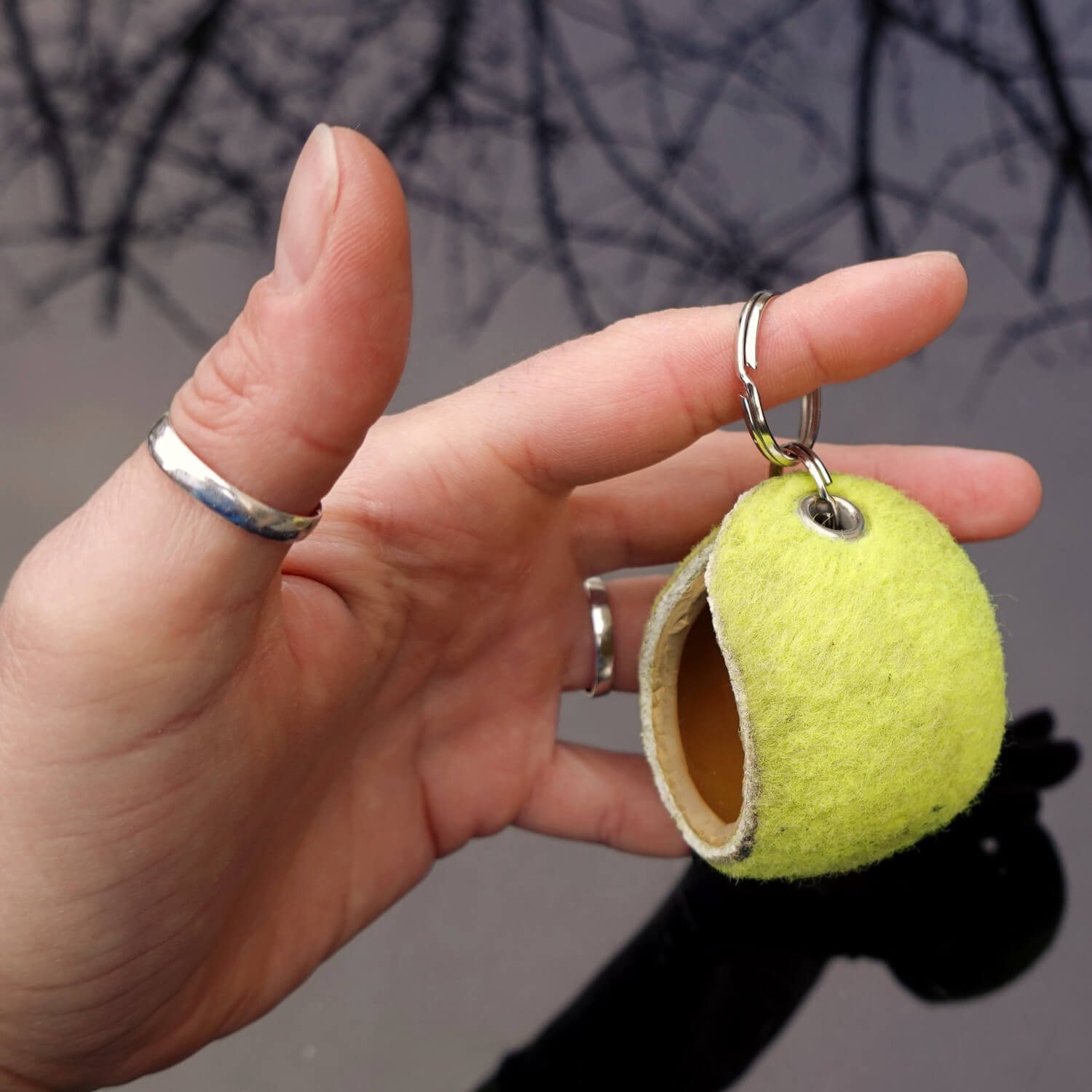 🎾 Porte-clés fabriqués à partir de balles de tennis usagées upcyclées.