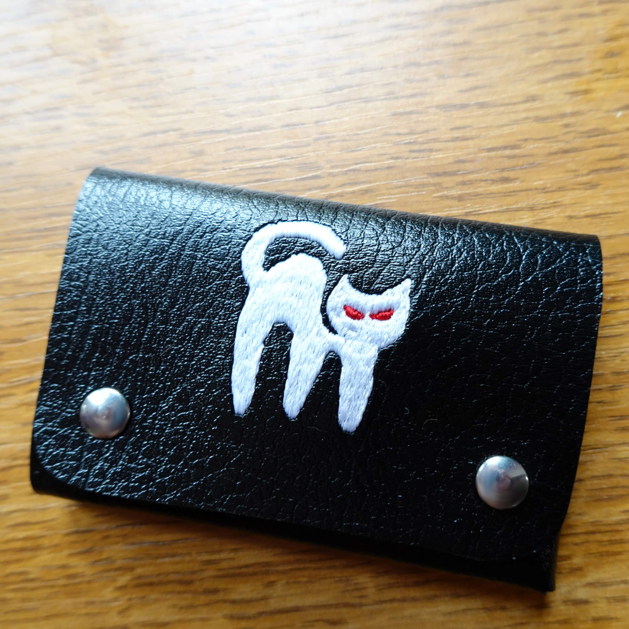 🐈 Portefeuille vegan minimaliste broderie chat yeux laser