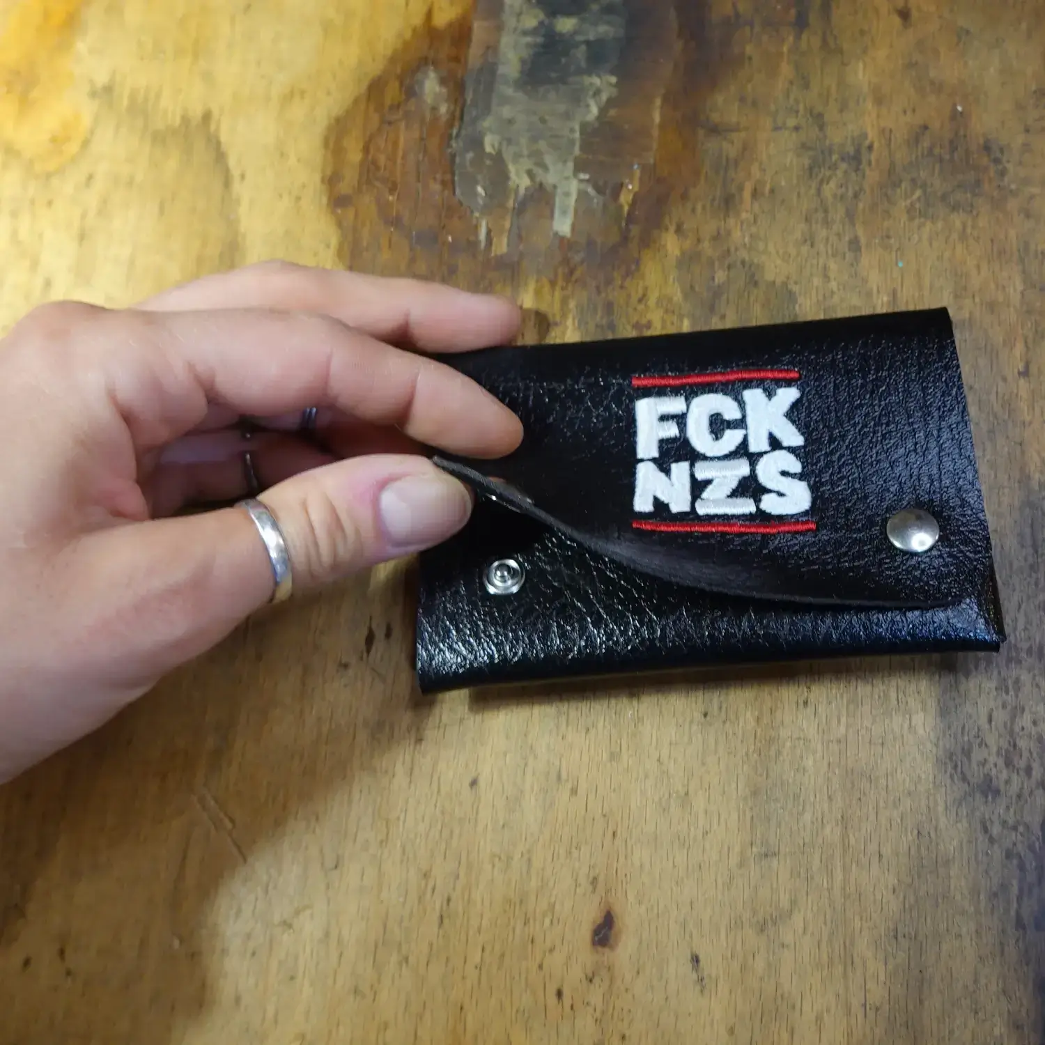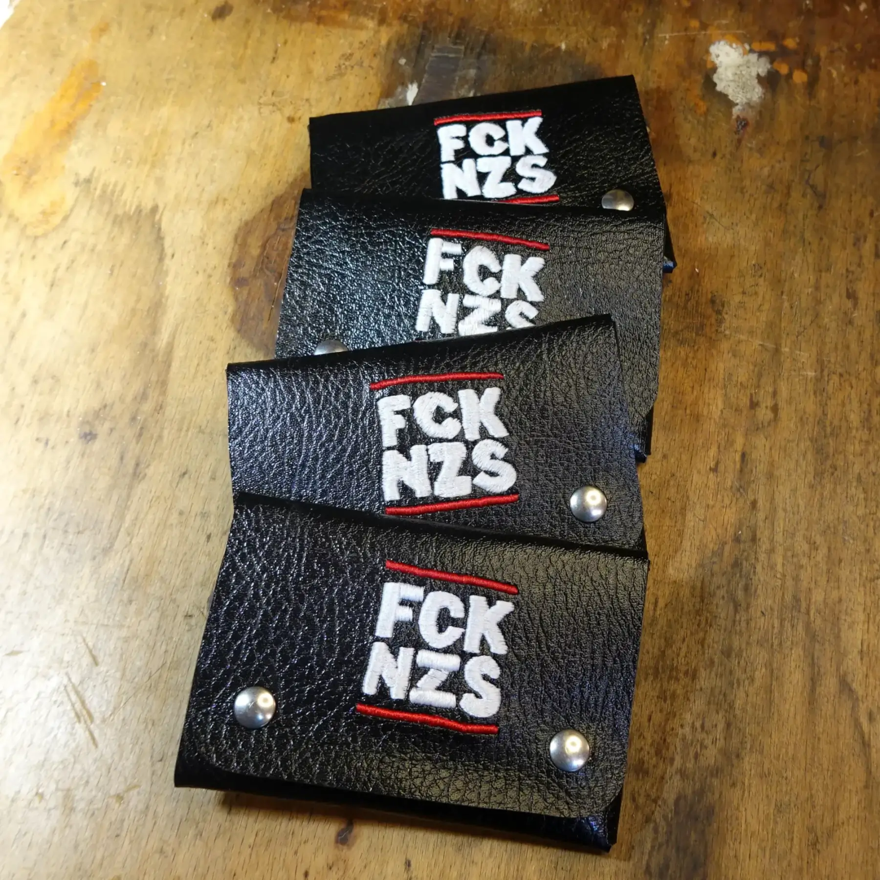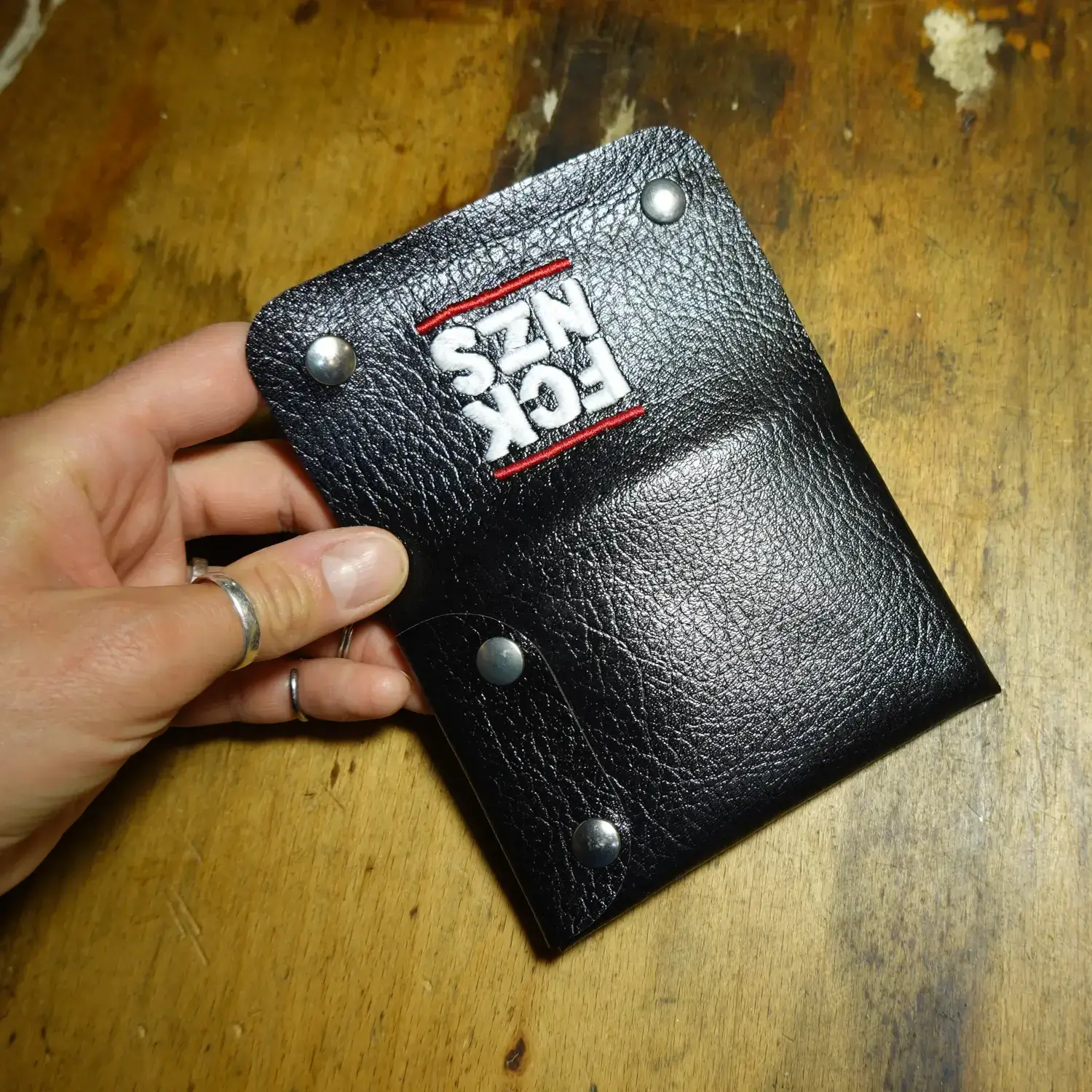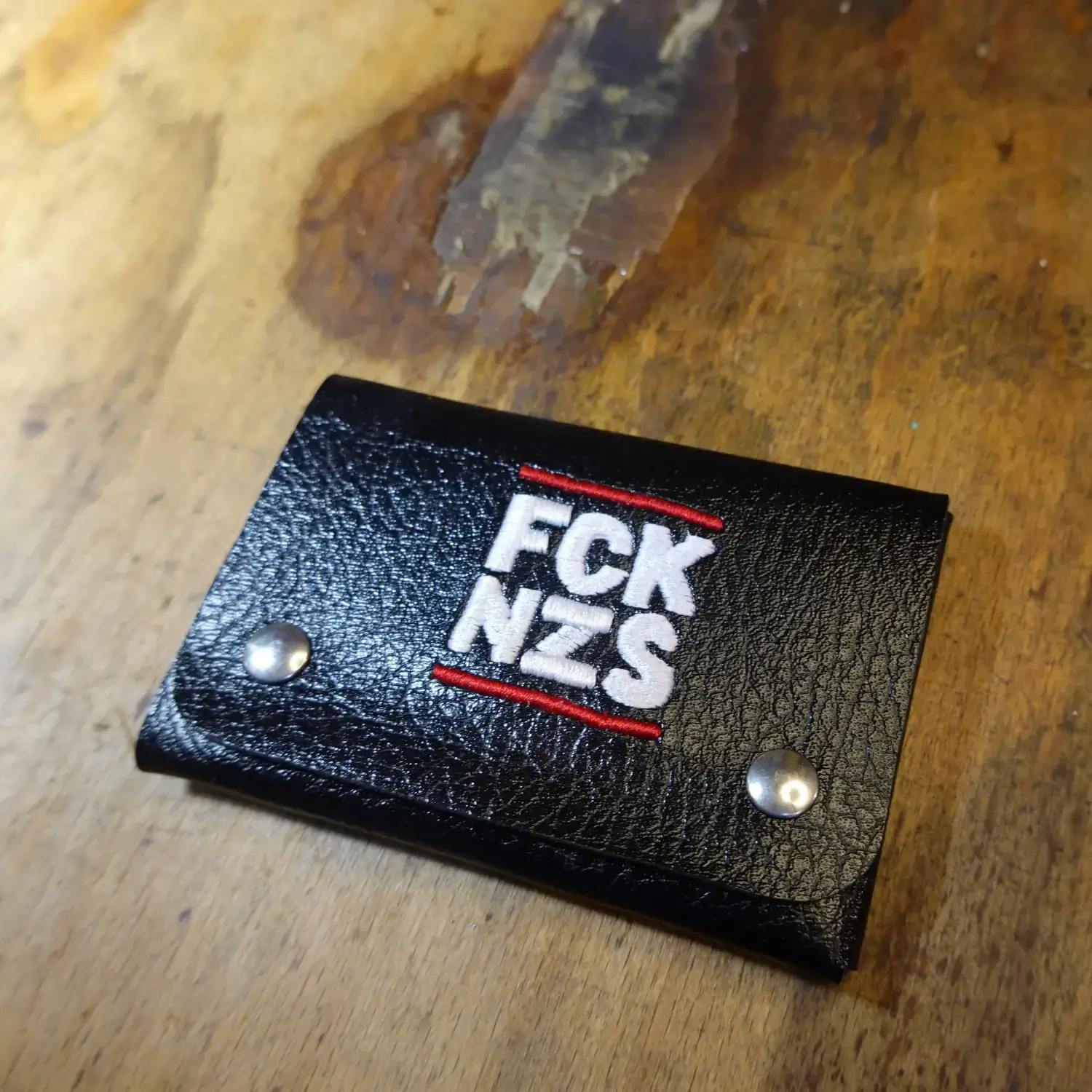 Portefeuille vegan minimaliste broderie FCK NZS ✊