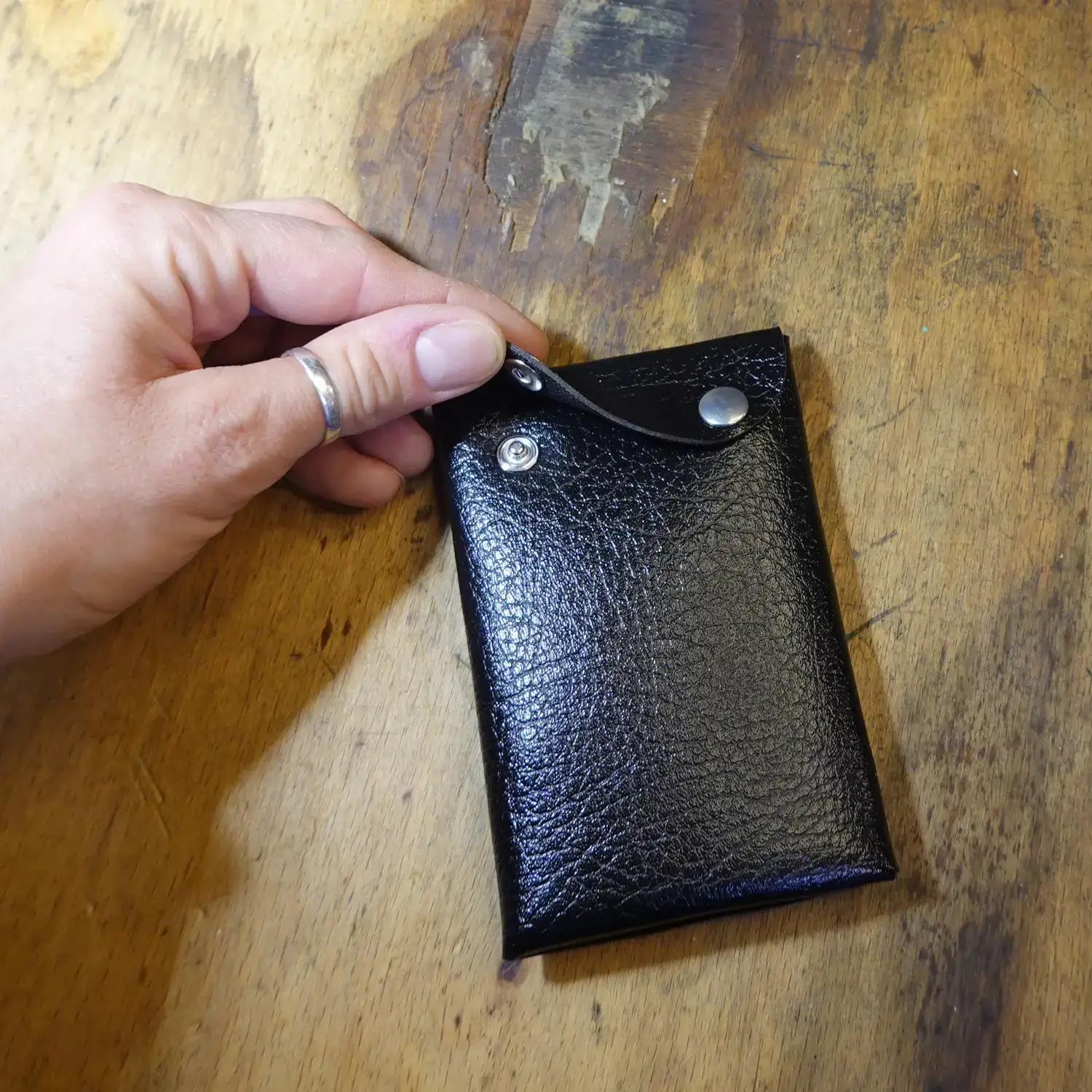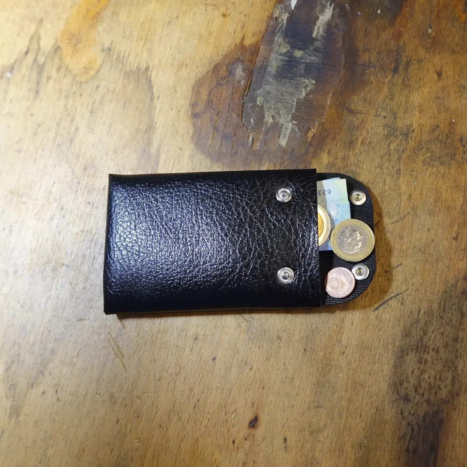 S’ouvre par l’avant (boutons pression) pour accéder à la fois au compartiments pièces et billets et aux 2 emplacements cartes, mais également par l’arrière pour accéder uniquement au compartiment pièces et billets.